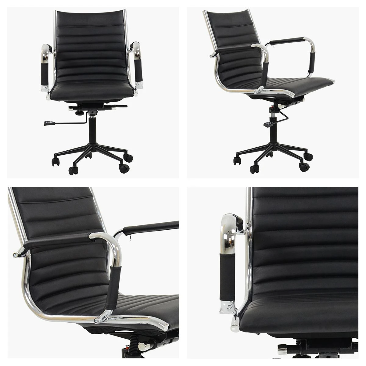 Faux Leather Eames Style Ribbed Seat Adjustable Height Castors