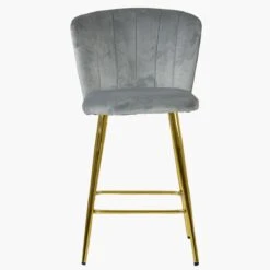 Dove Grey Velvet Gold Leg Bar Stool