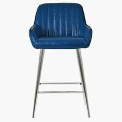 Hamilton Blue Leather Chrome Leg Counter Bar Stool