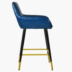 Hamilton Blue Leather Black Gold Leg Counter Bar Stool