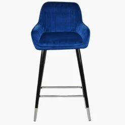 Hamilton Blue Velvet Black Silver Leg Kitchen Stool
