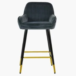 Hamilton Dark Grey Velvet Black Gold Leg Breakfast Stool
