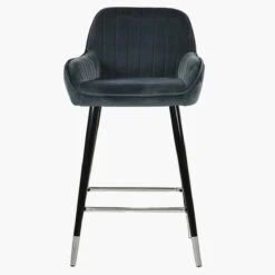 Hamilton Dark Grey Velvet Black Silver Leg Barstool
