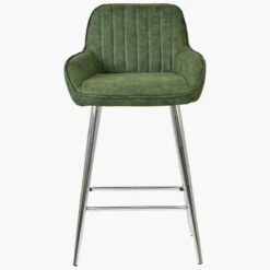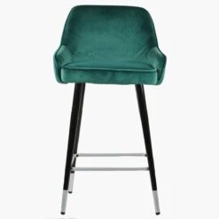 Longdale Green Velvet Black Silver Leg Breakfast Stool