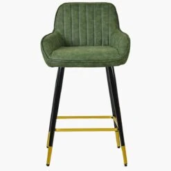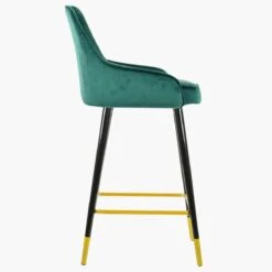 Longdale Green Velvet Black Gold Leg Kitchen Stool
