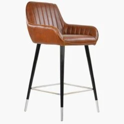 Scada Brown Faux Leather Black Silver Leg Bar Stool