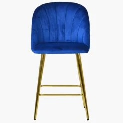 Scada Blue Velvet Gold Leg Kitchen Stool