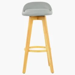Athena Grey Faux Leather Wood Leg Bar Stool