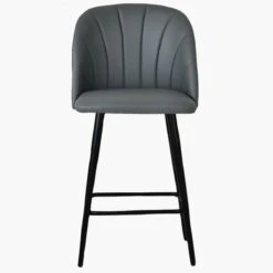 Scada Dark Grey Faux Leather Black Leg Breakfast Stool