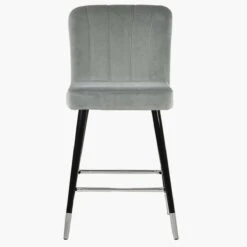 Waldorf Grey Velvet Black Silver Leg Bar Stool