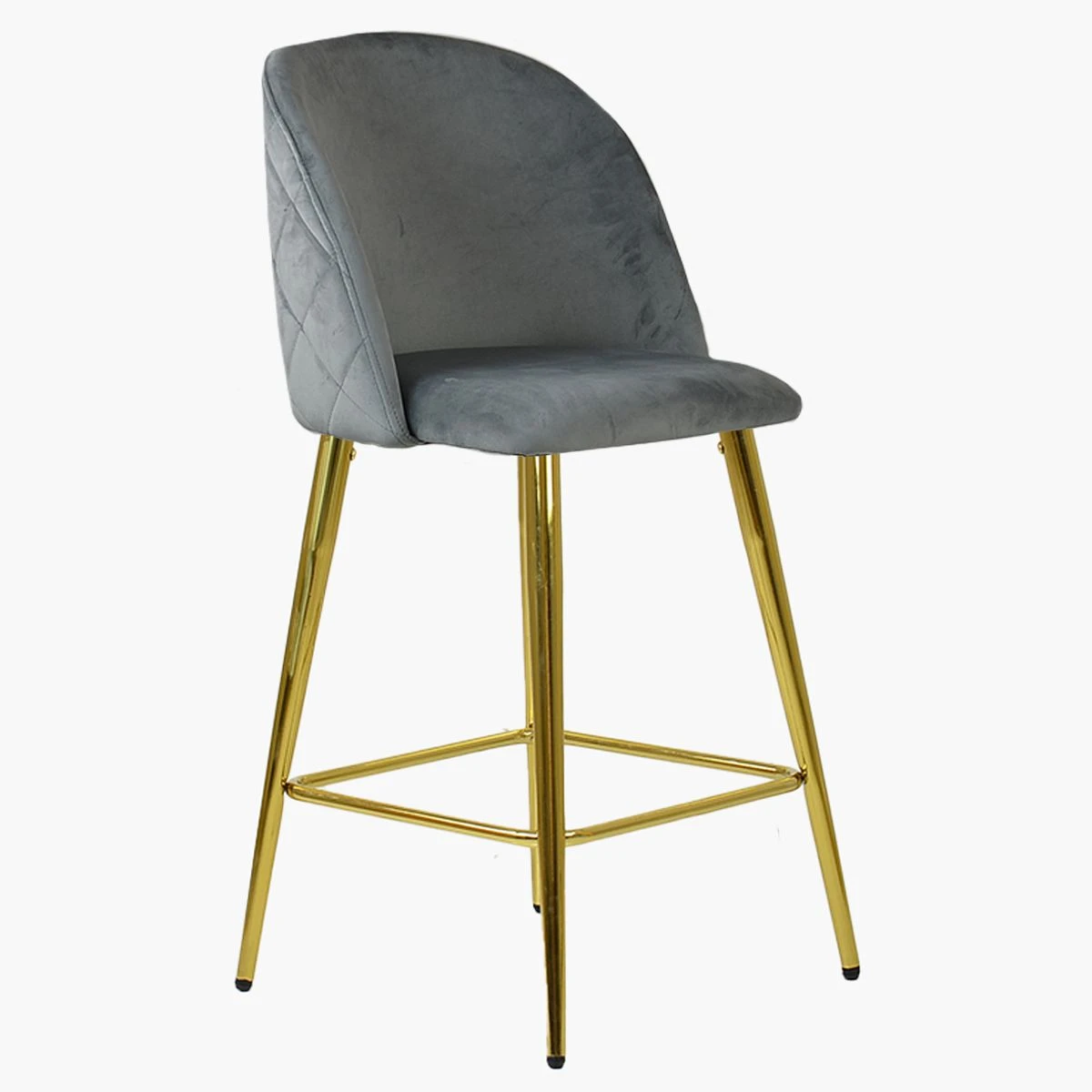 Create a chic and sophisticated ambience with the Brooklands bar stool in stylish grey velvet. The fixed-height base unit and four sturdy legs ensure stability. In contrast, the stylish electroplated gold legs add a touch of elegance. Relax on the curved backrest, which offers ergonomic support and comfort. The diamond-stitched backrest adds a luxurious and trendy accent to the stool’s design.
