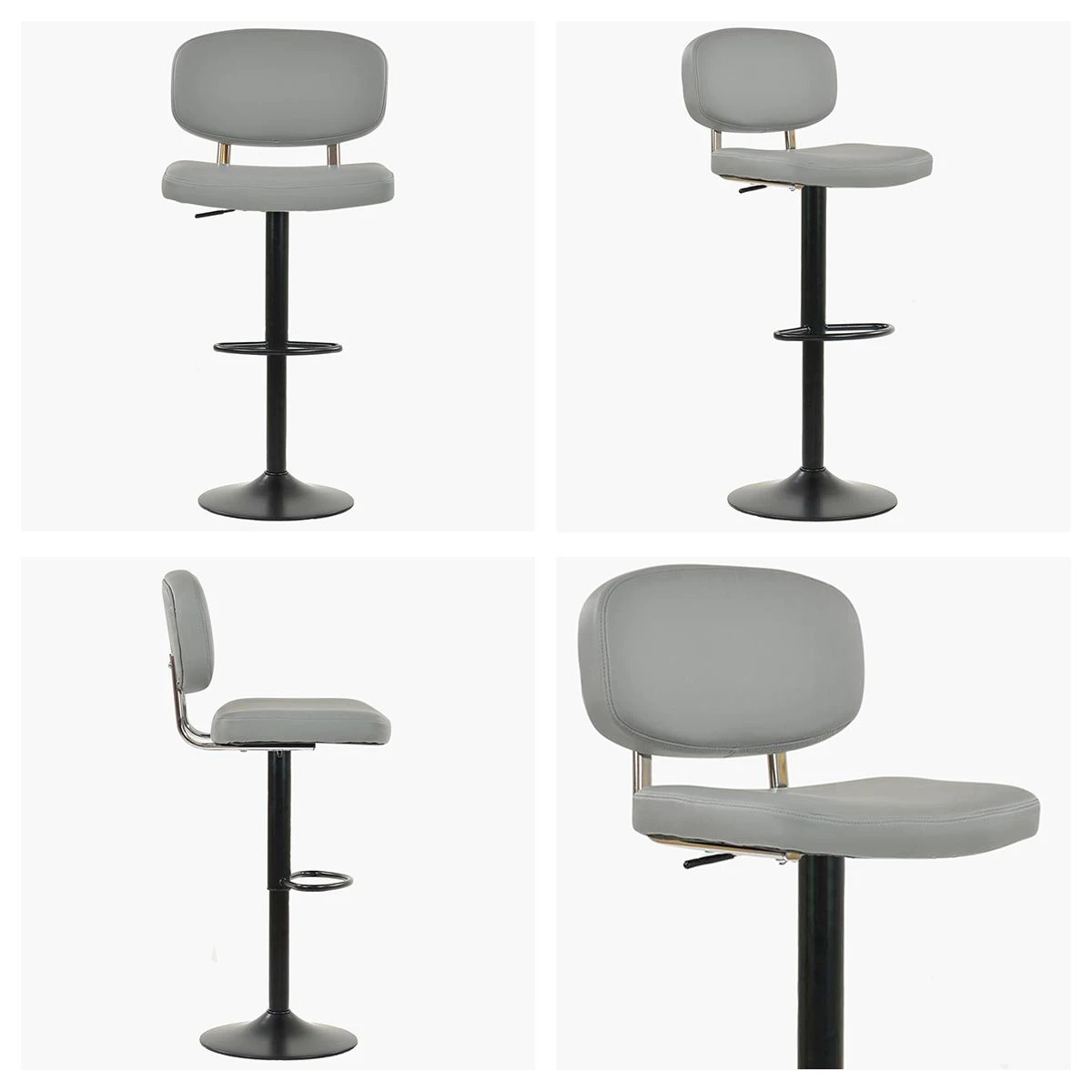 Faux Leather Black Metal Frame Adjustable Height Padded Seat