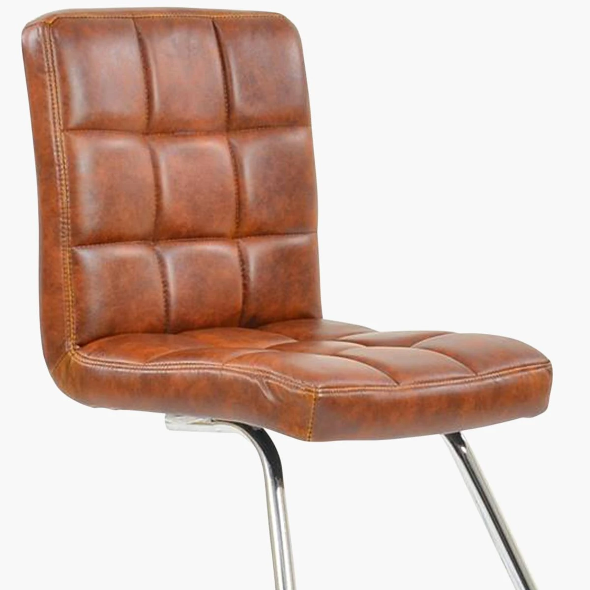 Cuba Vintage Brown Faux Leather Office Chair Without Wheels - Image 2