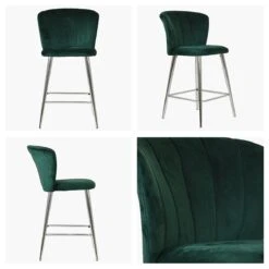 Velvet Fabric Seat Fixed Height Stool Elegant Design