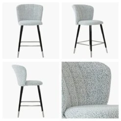 Boucle Fabric Seat Fixed Height Stool Elegant Design