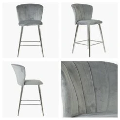Velvet Fabric Seat Fixed Height Stool Elegant Design
