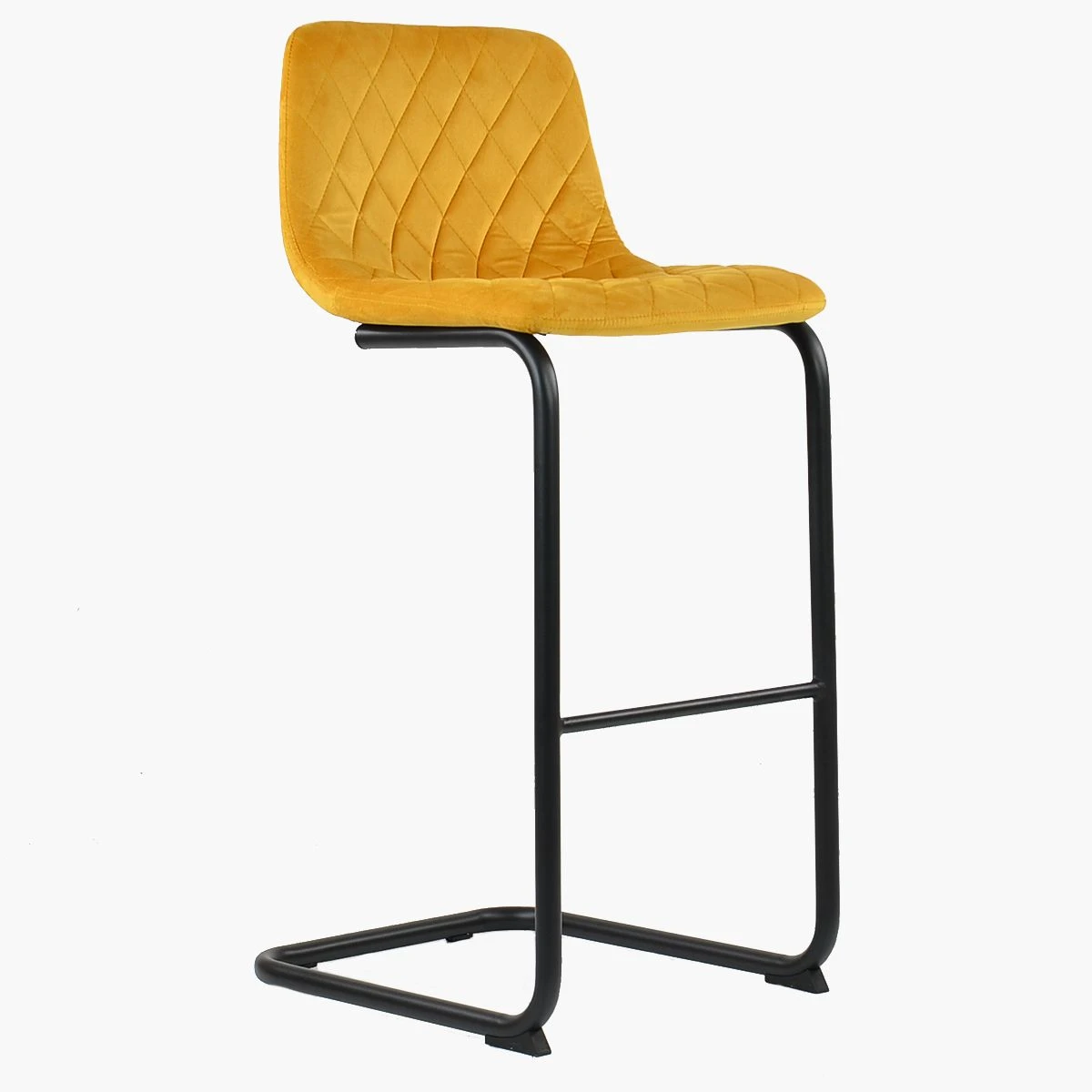 Velvet Seat Fixed Height Stool Vertical Stitched