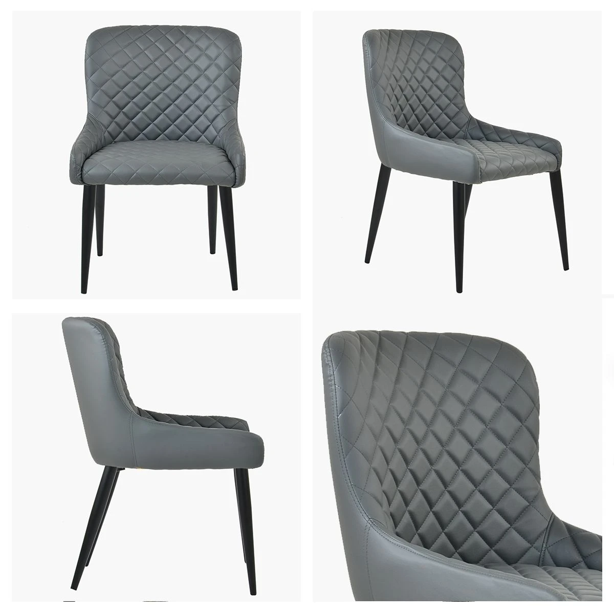 Heron Dark Grey Faux Leather Dining Chair With Black Legs - Image 4
