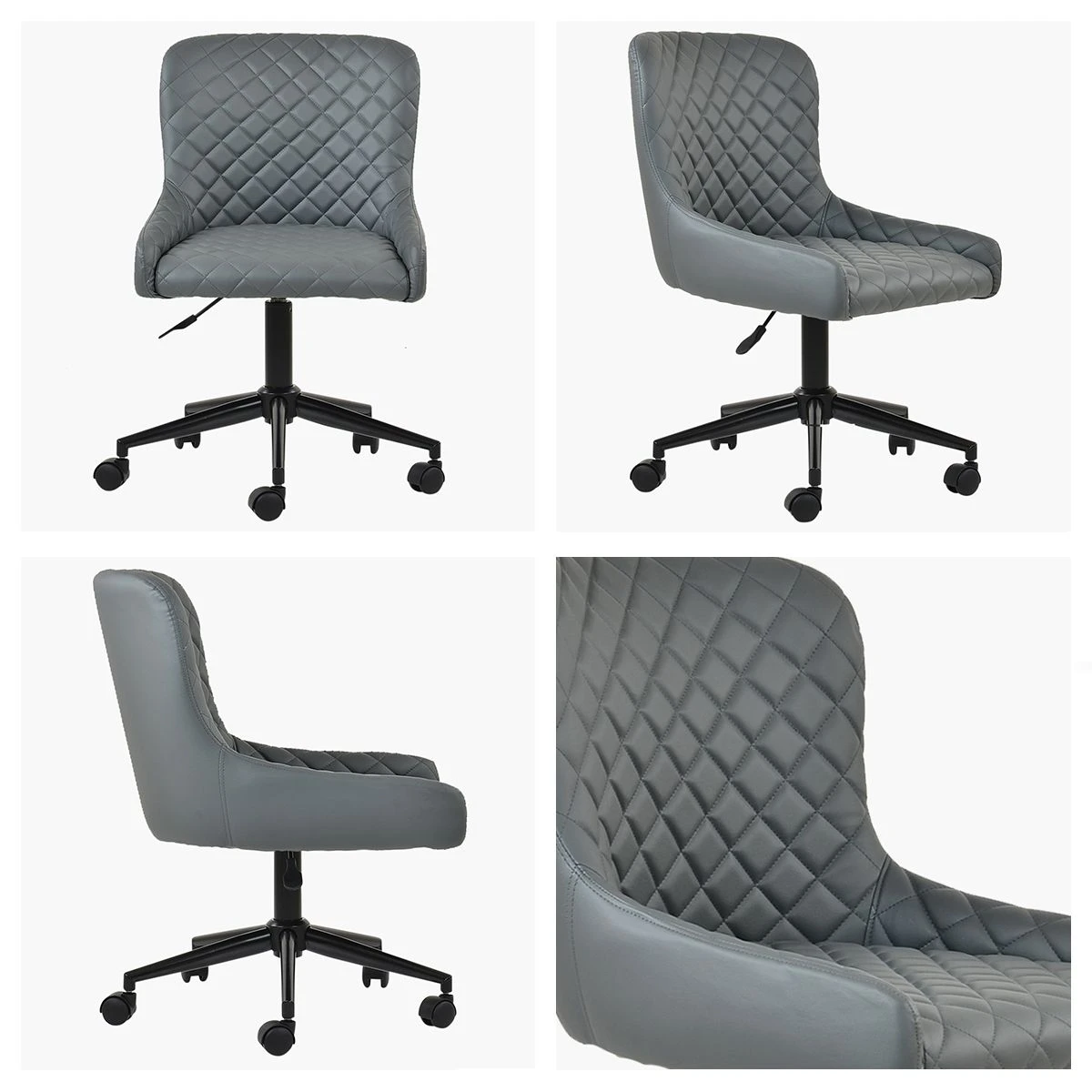 Heron Dark Grey Faux Leather Swivel Office Chair Black Legs