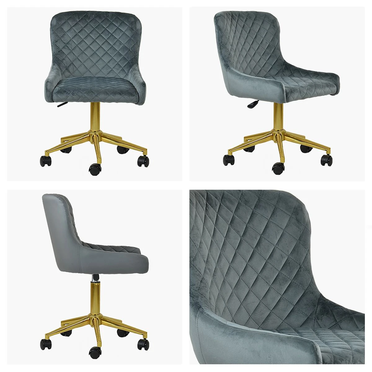 Be the first to review “Heron Dark Grey Velvet Swivel Office Chair With Gold Legs” Cancel reply