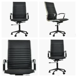 Faux Leather Ribbed Seat Design Adjustable Height Castors