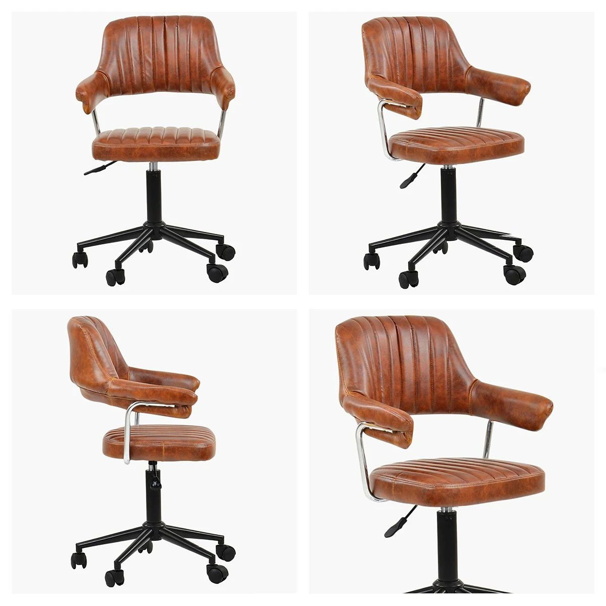 Faux Leather Home Office Chair Adjustable Height With Arms Black Base