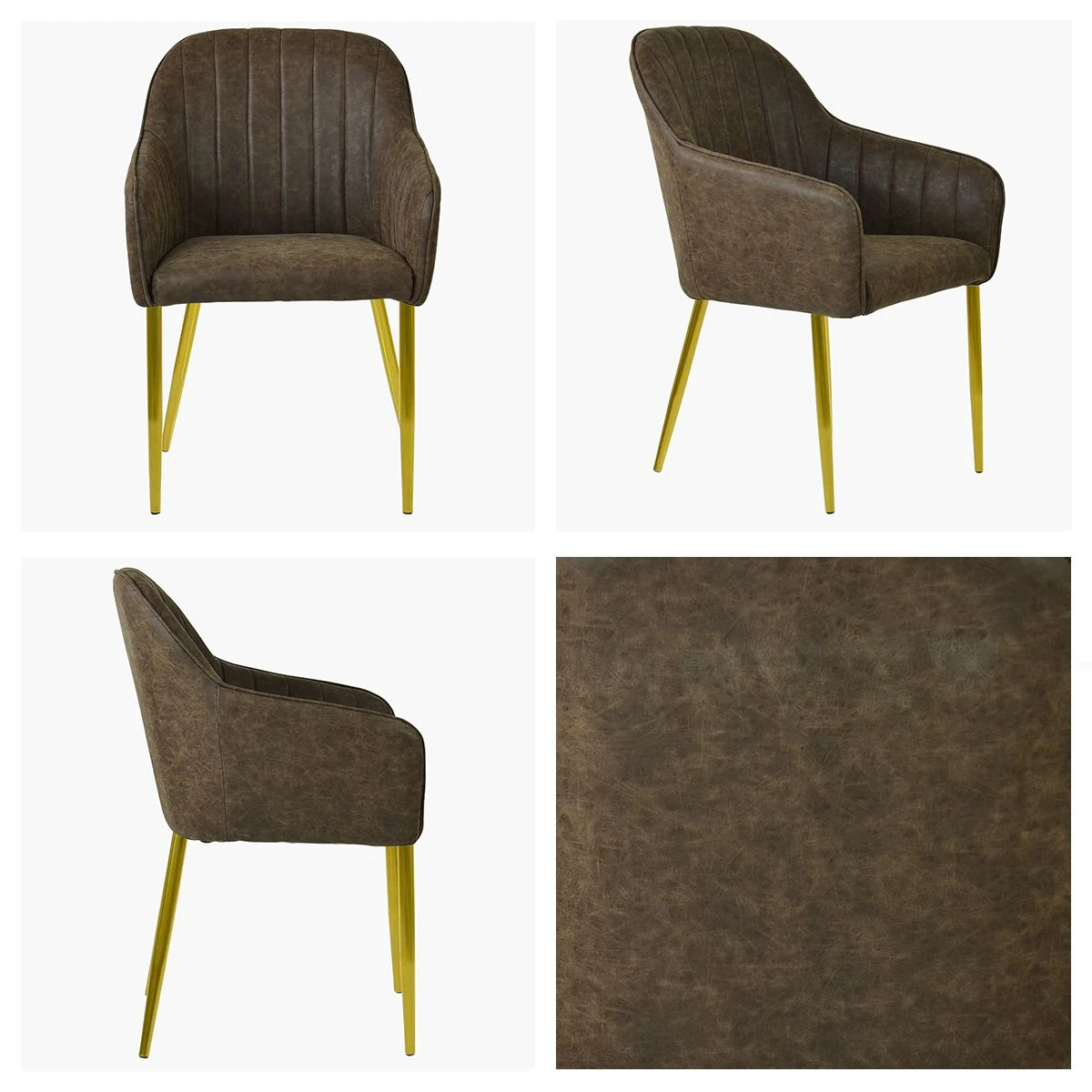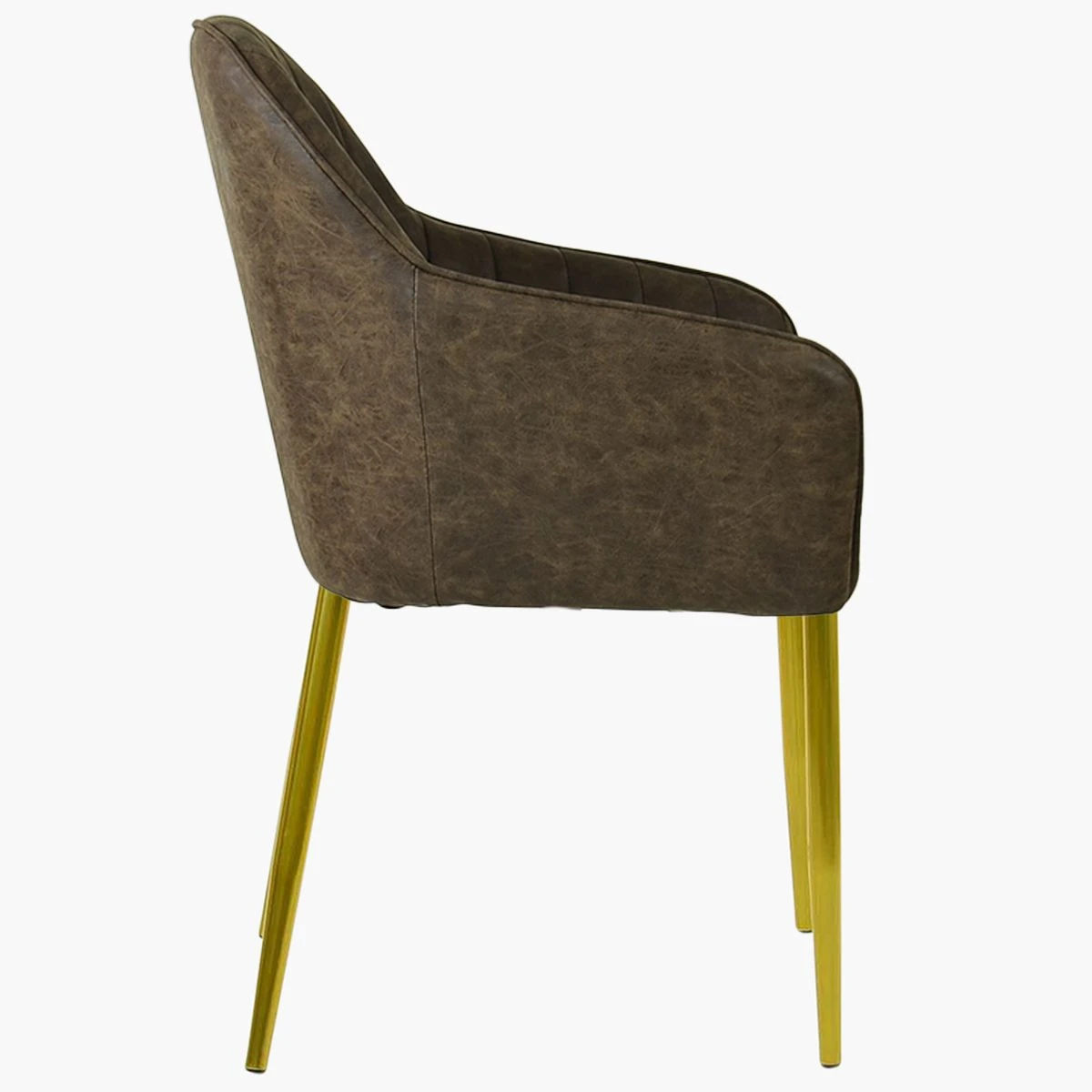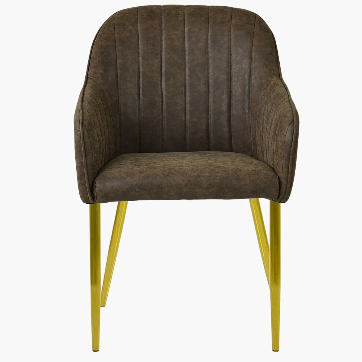 Lule Carver Antique Brown Leather Dining Chair With Gold Leg