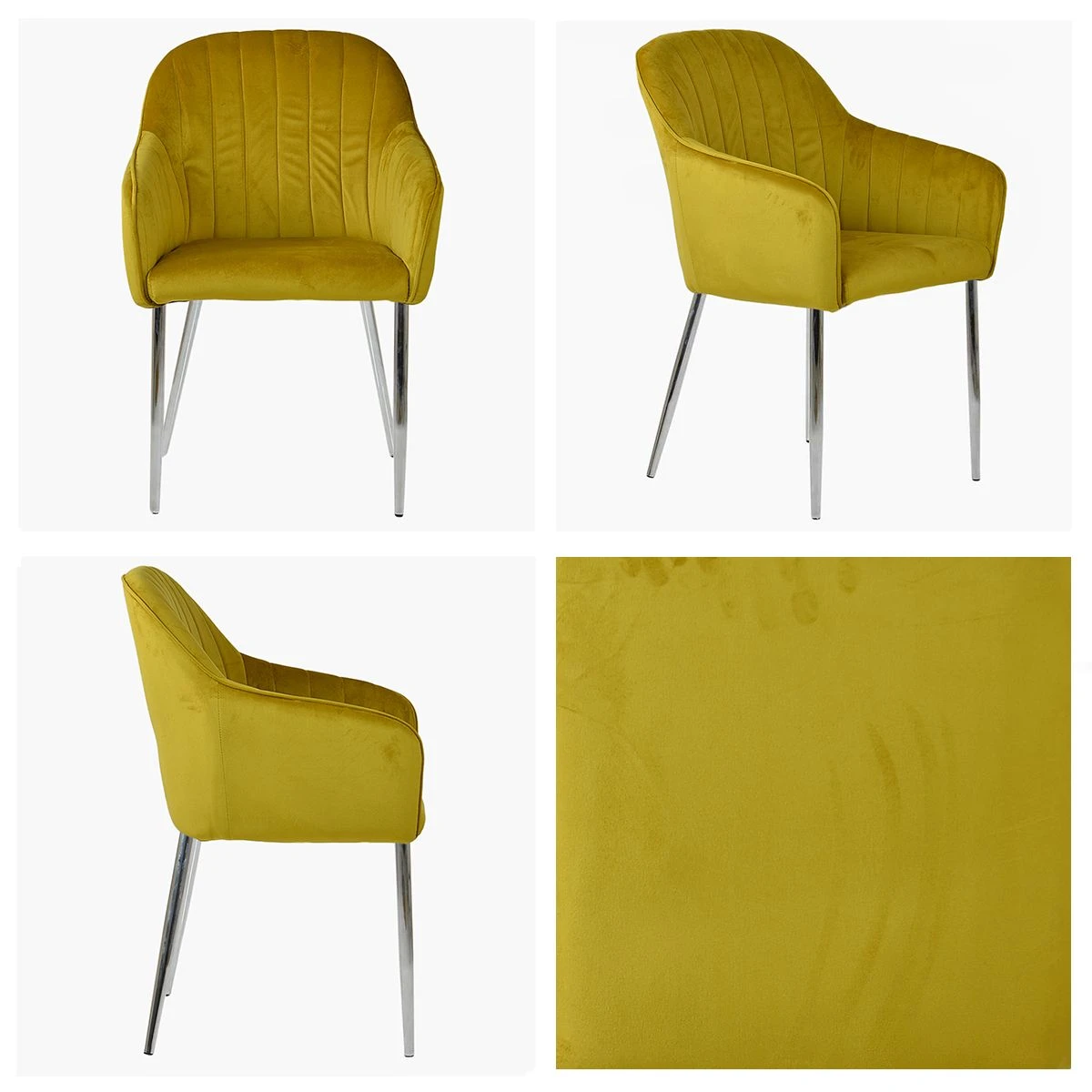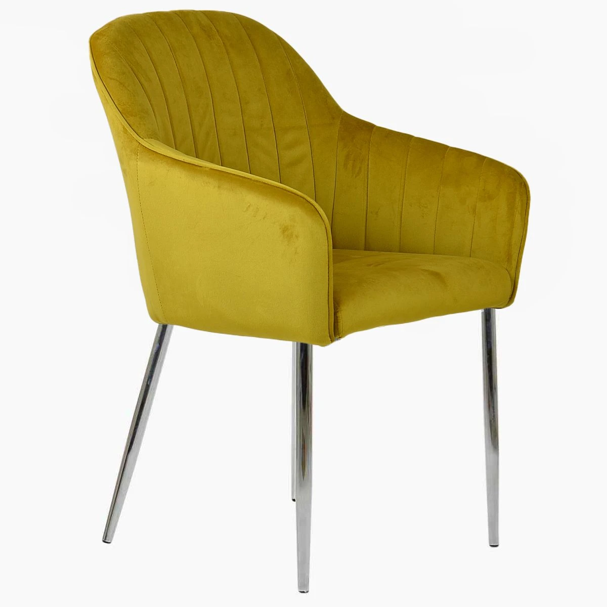 Lule Carver Mustard Velvet Dining Chair With Chrome Leg