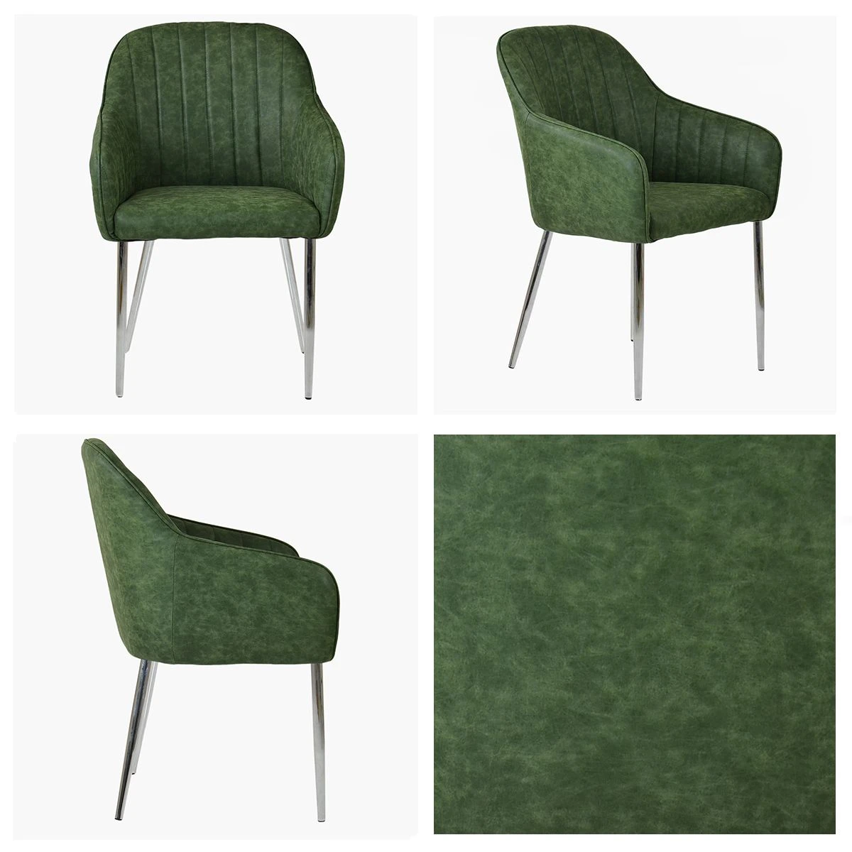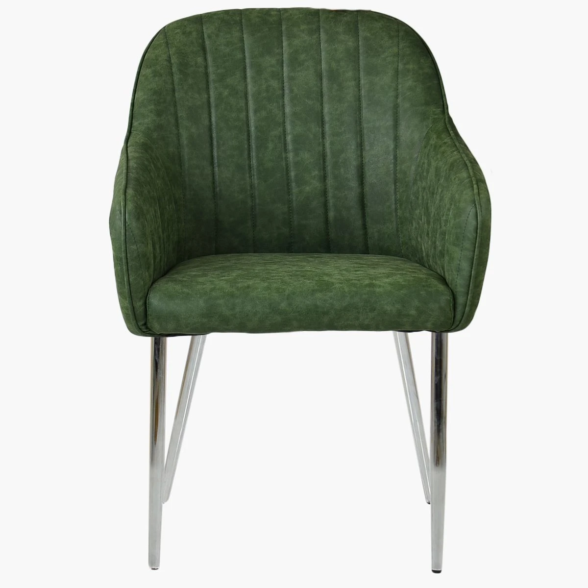Lule Carver Vintage Green Leather Dining Chair With Chrome Leg