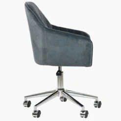Lule Dark Grey Velvet Swivel Home Office Chair Chrome Base - Image 4
