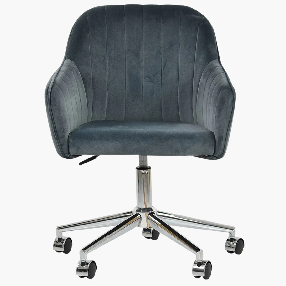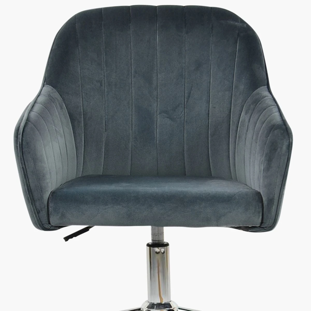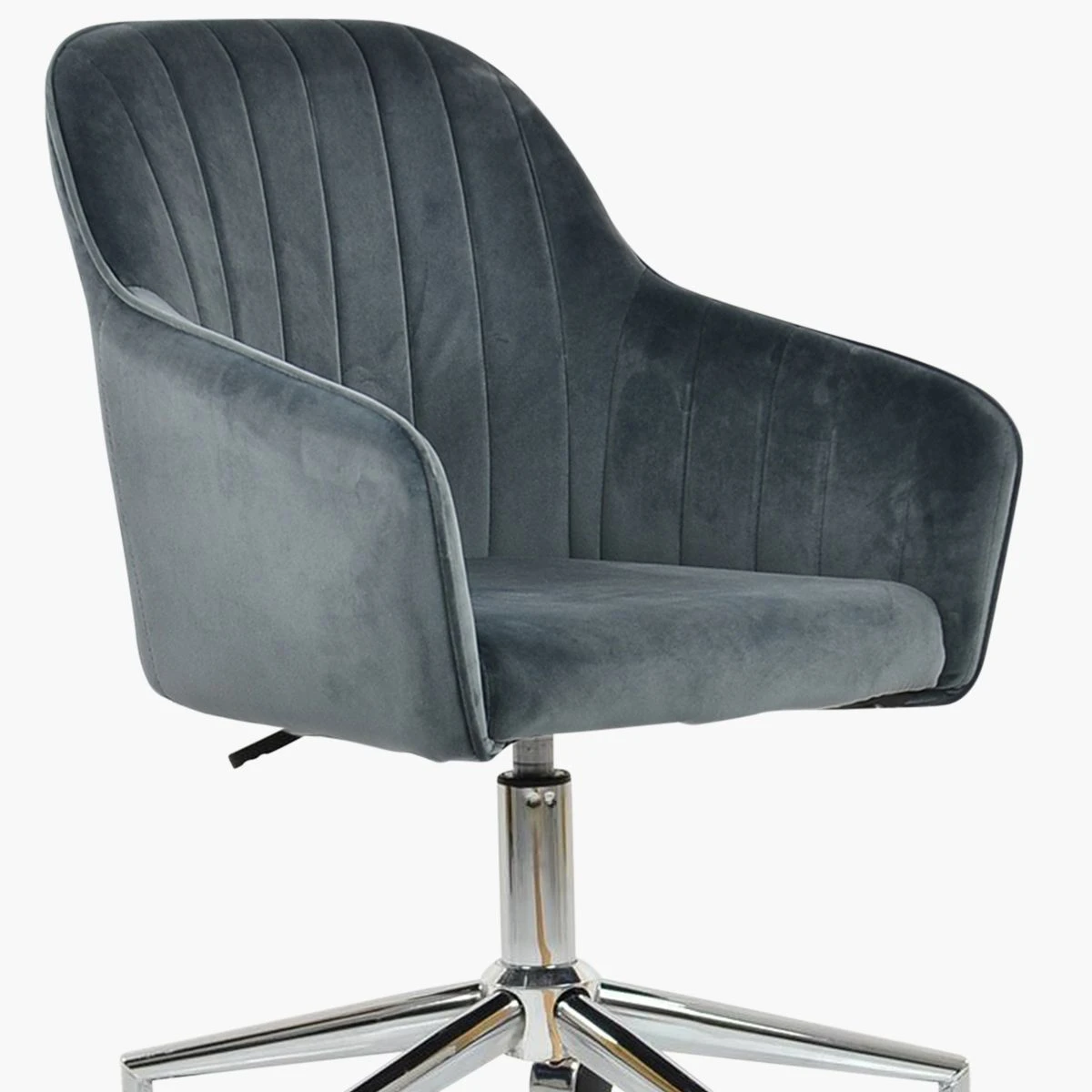 Lule Dark Grey Velvet Swivel Home Office Chair Chrome Base - Image 2