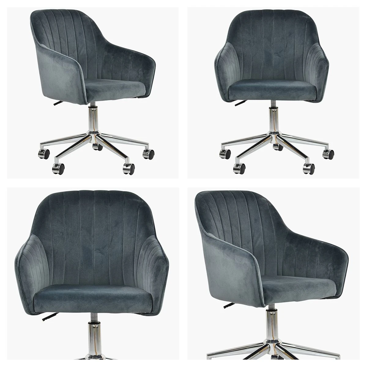 Lule Dark Grey Velvet Swivel Home Office Chair Chrome Base
