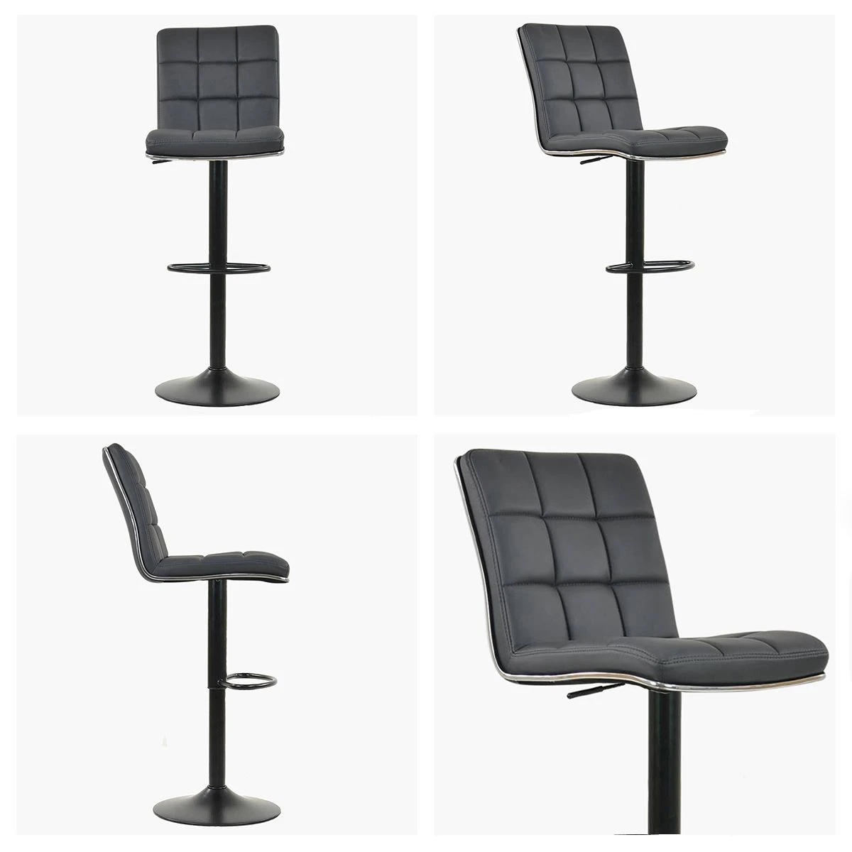 Luna Dark Grey Faux Leather Black Base Breakfast Stool