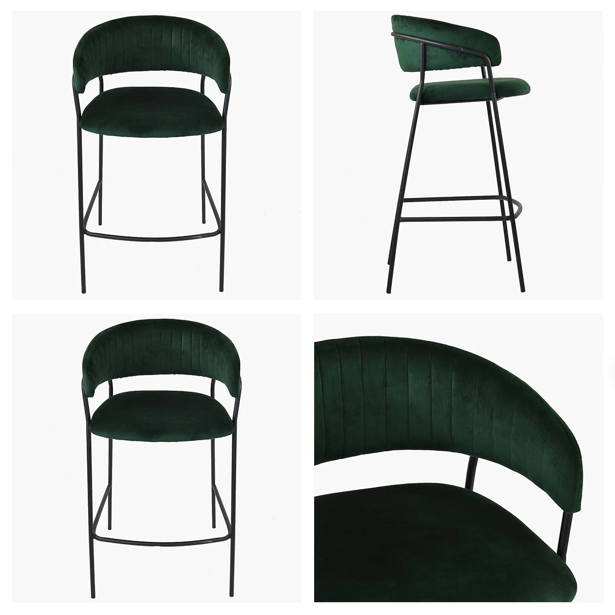 Velvet Stitched Seat Fixed Hieght Barstool