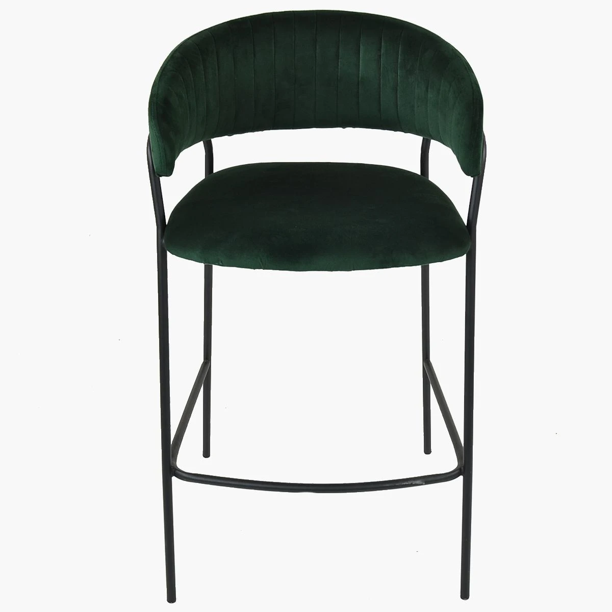 Upgrade your kitchen with the Mando bar stool in green velvet. Enjoy ultimate comfort with its supportive backrest, fixed height with footrest, and armrests. The modern design with vertical stitching adds a trendy touch to your space. With its robust construction, this bar stool guarantees durability and long-lasting use. The black base complements the green velvet seat beautifully. Plus, it’s in stock and ready for delivery, so you can effortlessly enhance your kitchen’s ambience with this stylish and comfortable seating option.