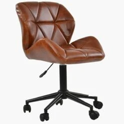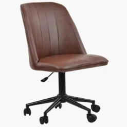 Barnes Vintage Brown Faux Leather Small Home Swivel Office Chair