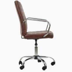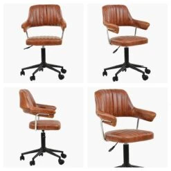 Kennack Vintage Brown Faux Leather Small Home Swivel Office Chair