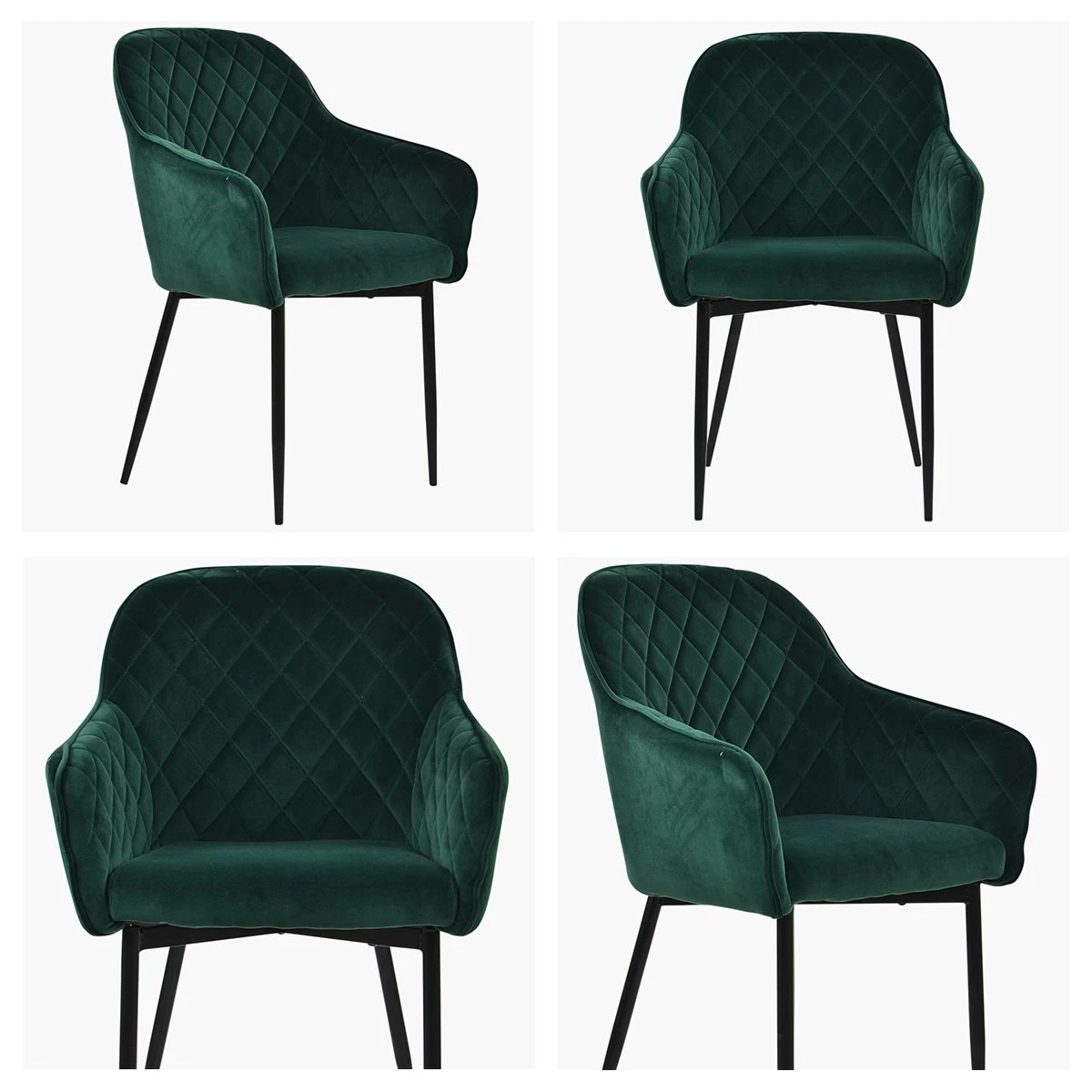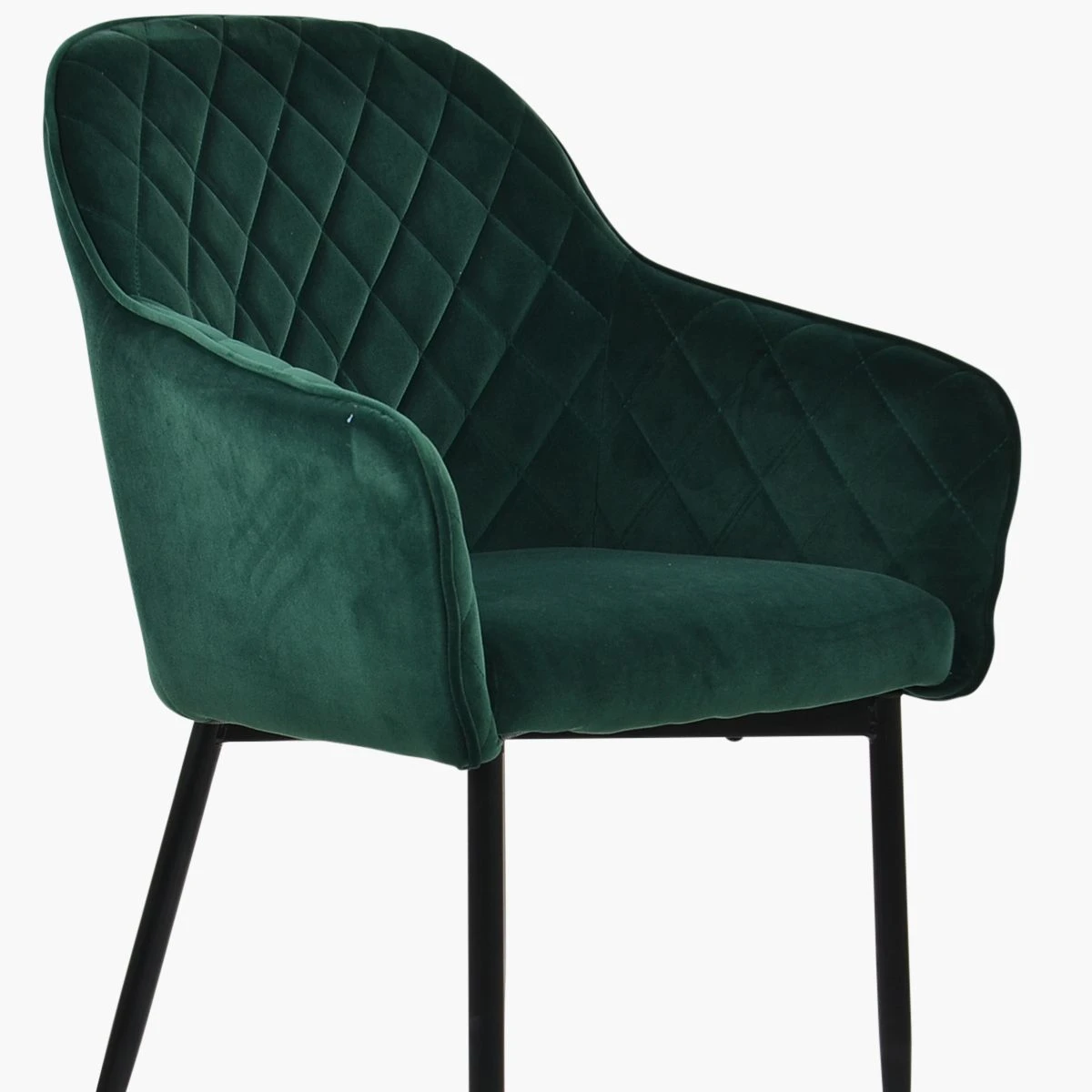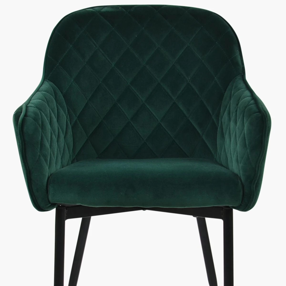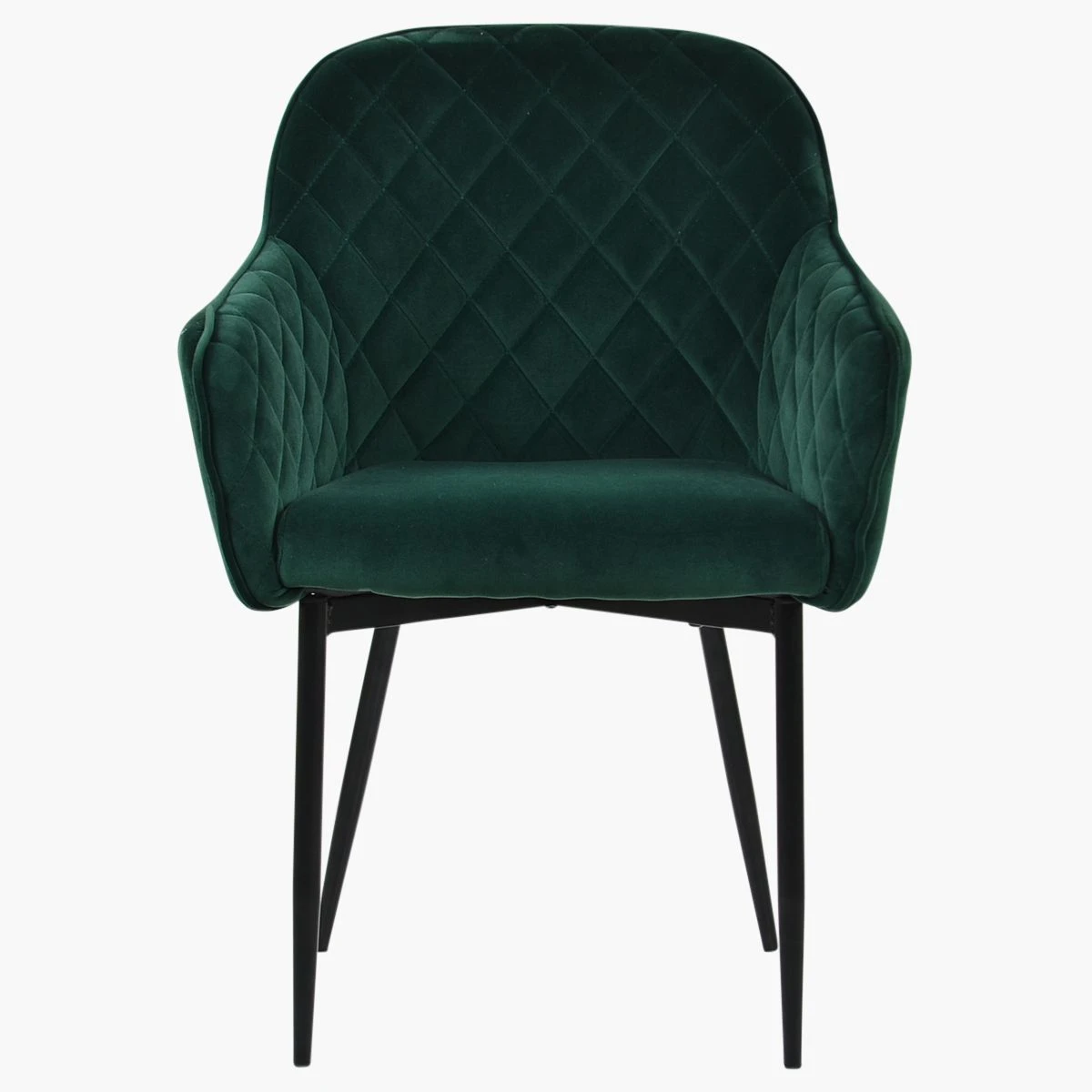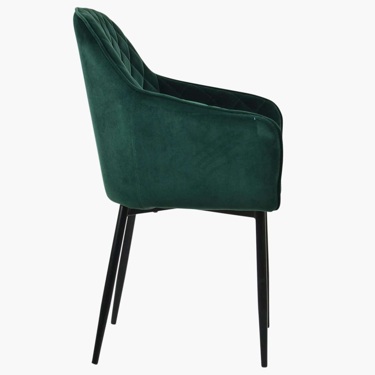 Opus Carver Green Velvet Dining Chair With Black Legs And Armrests - Image 2
