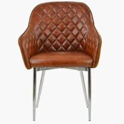 Opus Carver Vintage Brown Leather Dining Chair With Chrome Legs And Armrests