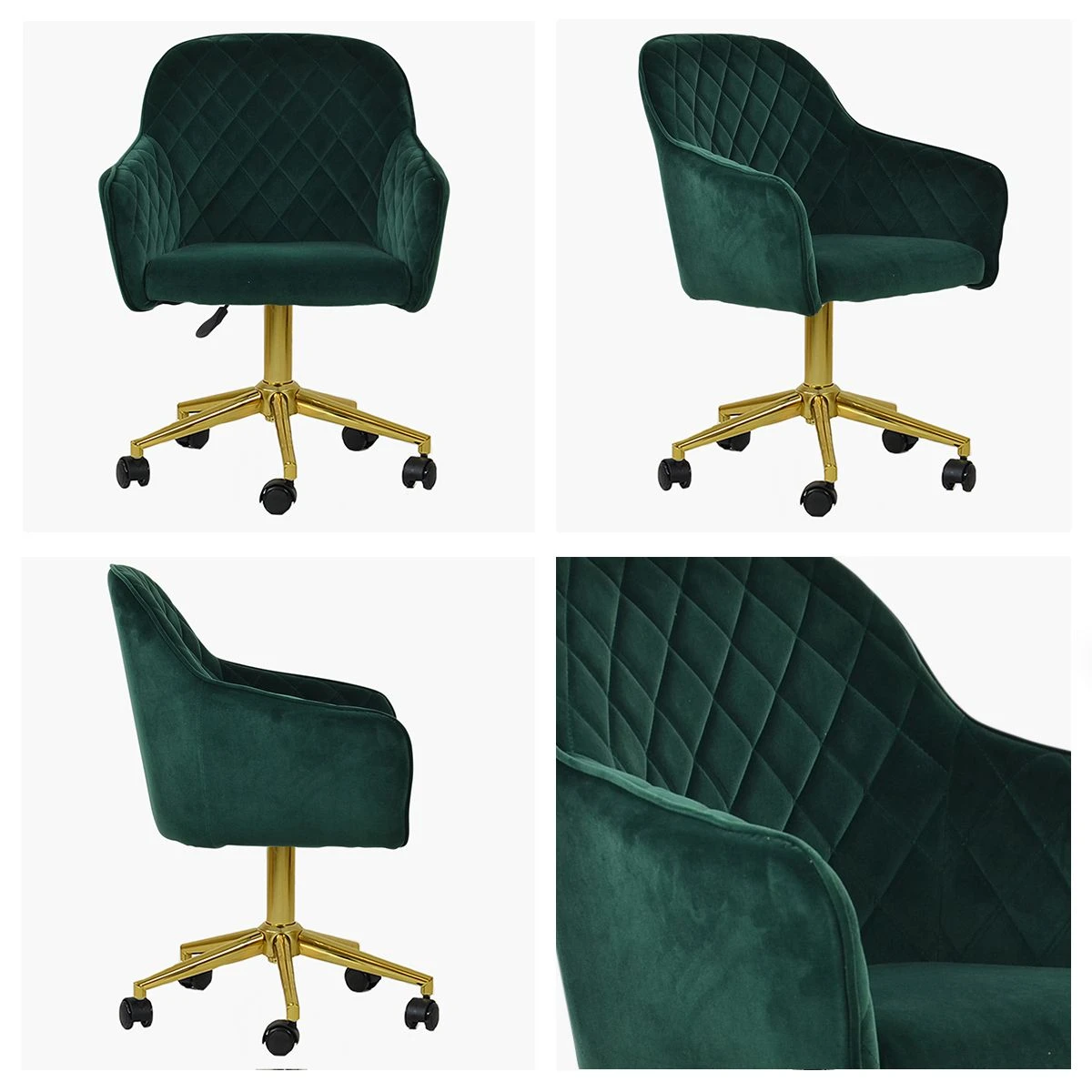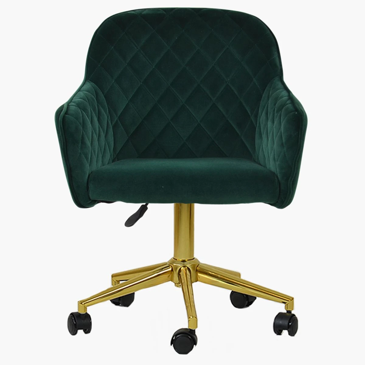 Opus Green Velvet Swivel Office Chair With Gold Legs