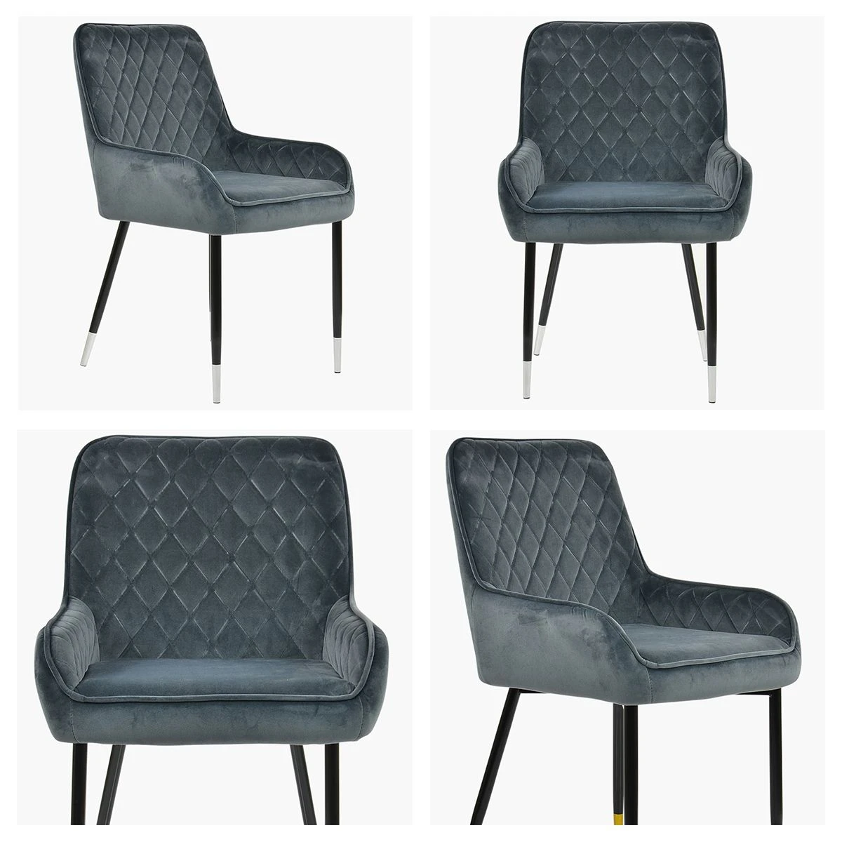 • Black coated, solid metal leg with silver detailing.
