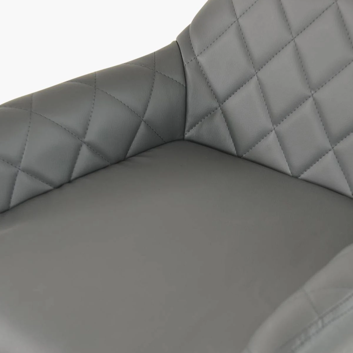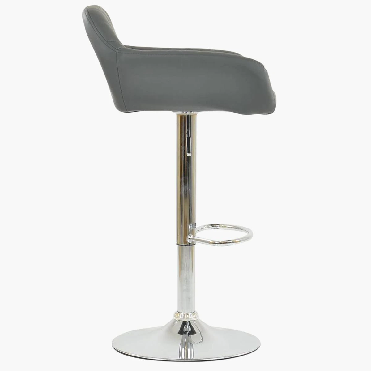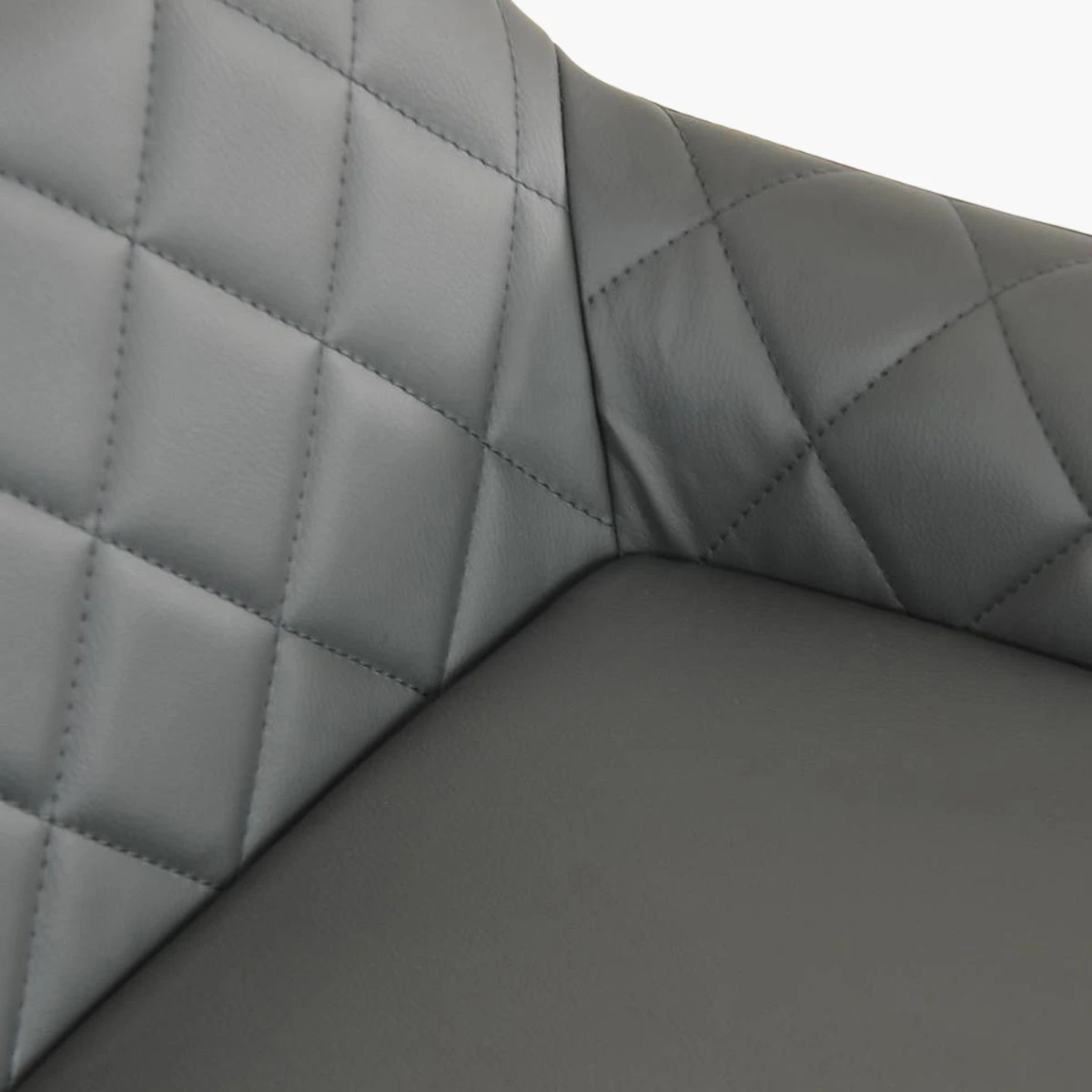 Introducing the Portman bar stool in dark grey faux leather – a perfect blend of style and comfort. With its chrome finish base and gas lift adjustment of 60-80cm, you can easily find the right height. The 360-degree swivel allows for convenient movement. The modern design complements the kitchen decor, and the footrest adds extra comfort. Armrests provide support while you relax or enjoy meals. The contemporary design with diamond stitching adds a touch of elegance to your space. Upgrade your kitchen with the Portman bar stool in dark grey faux leather and enjoy its sleek and sophisticated look.