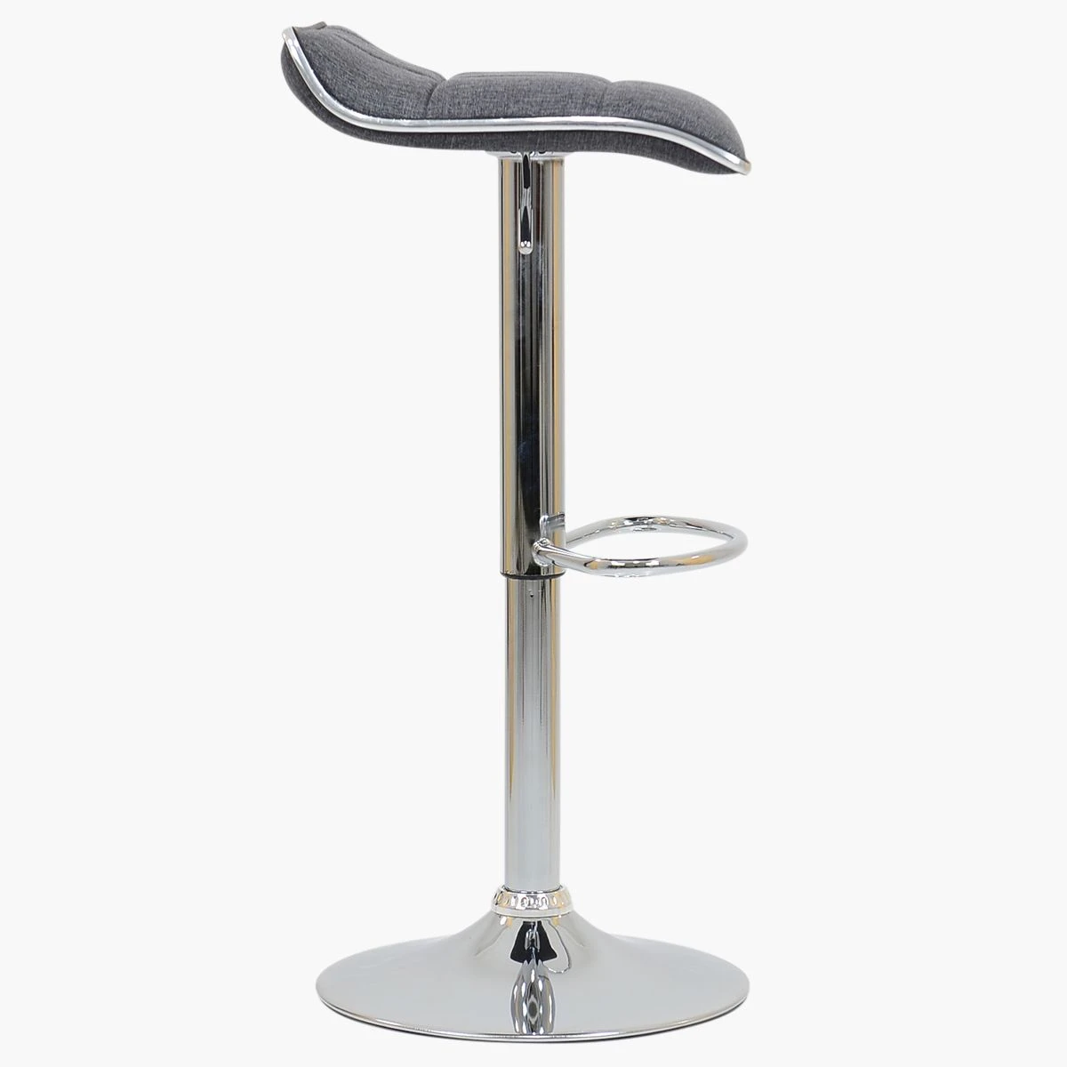 Meet the Rasmus bar stool in charcoal grey fabric – a perfect mix of comfort and style. Its chrome finish base and 60-80cm gas lift adjustment ensure practicality. The 360-degree swivel allows for easy rotation. The modern minimalist design adds elegance to your kitchen. The footrest provides added comfort during use. The gently curved seat turns up at the back and down at the front, ensuring a cosy seating experience. The quilted stitch design adds a touch of sophistication. Elevate your kitchen with the Rasmus bar stool in charcoal grey fabric and enjoy its contemporary charm.