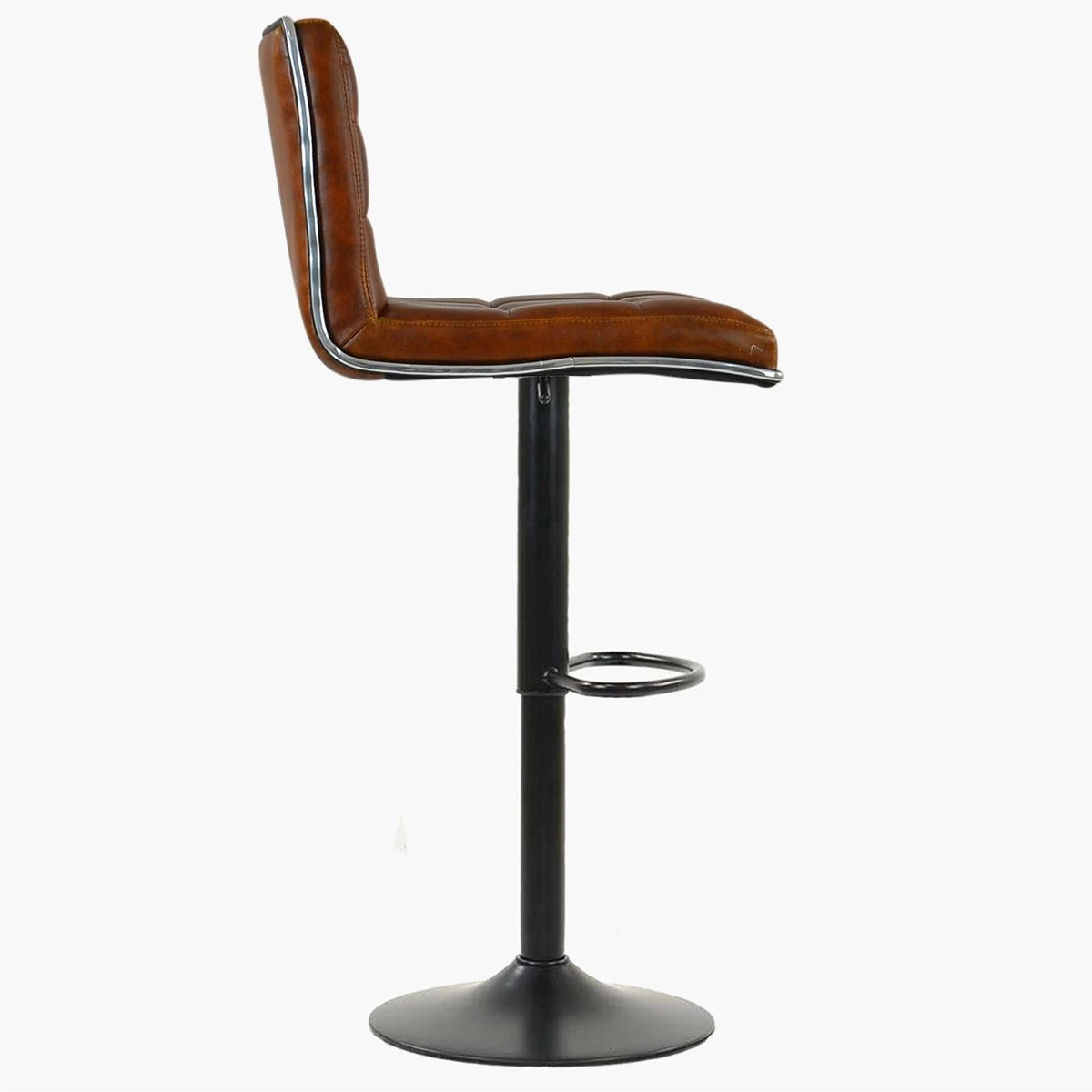 Faux Leather Padded Seat Adjustable Height Silver Trim Finish Black Base Unit