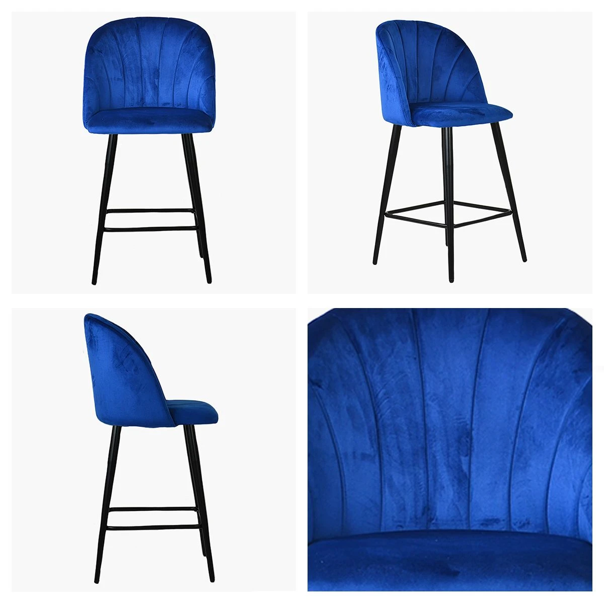 Scada Blue Velvet Black Leg Breakfast Stool - Image 2