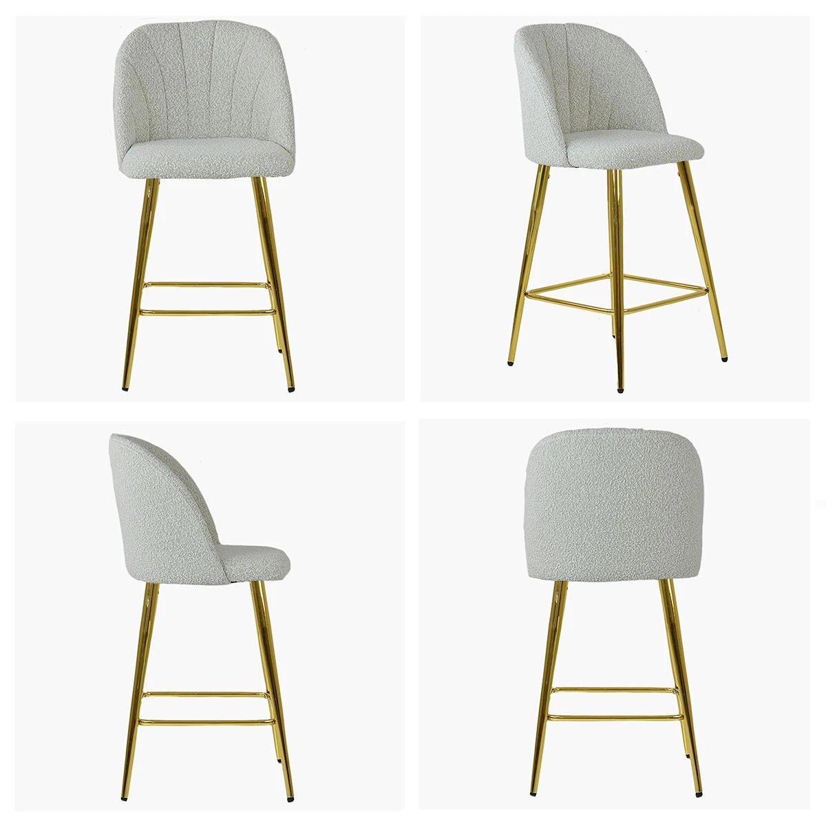 Boucle Fabric Seat Fixed Height Stool Elegant Design