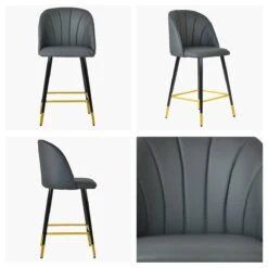 Faux Leather Seat Fixed Height Stool Elegant Design