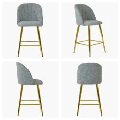 Boucle Fabric Seat Fixed Height Stool Elegant Design