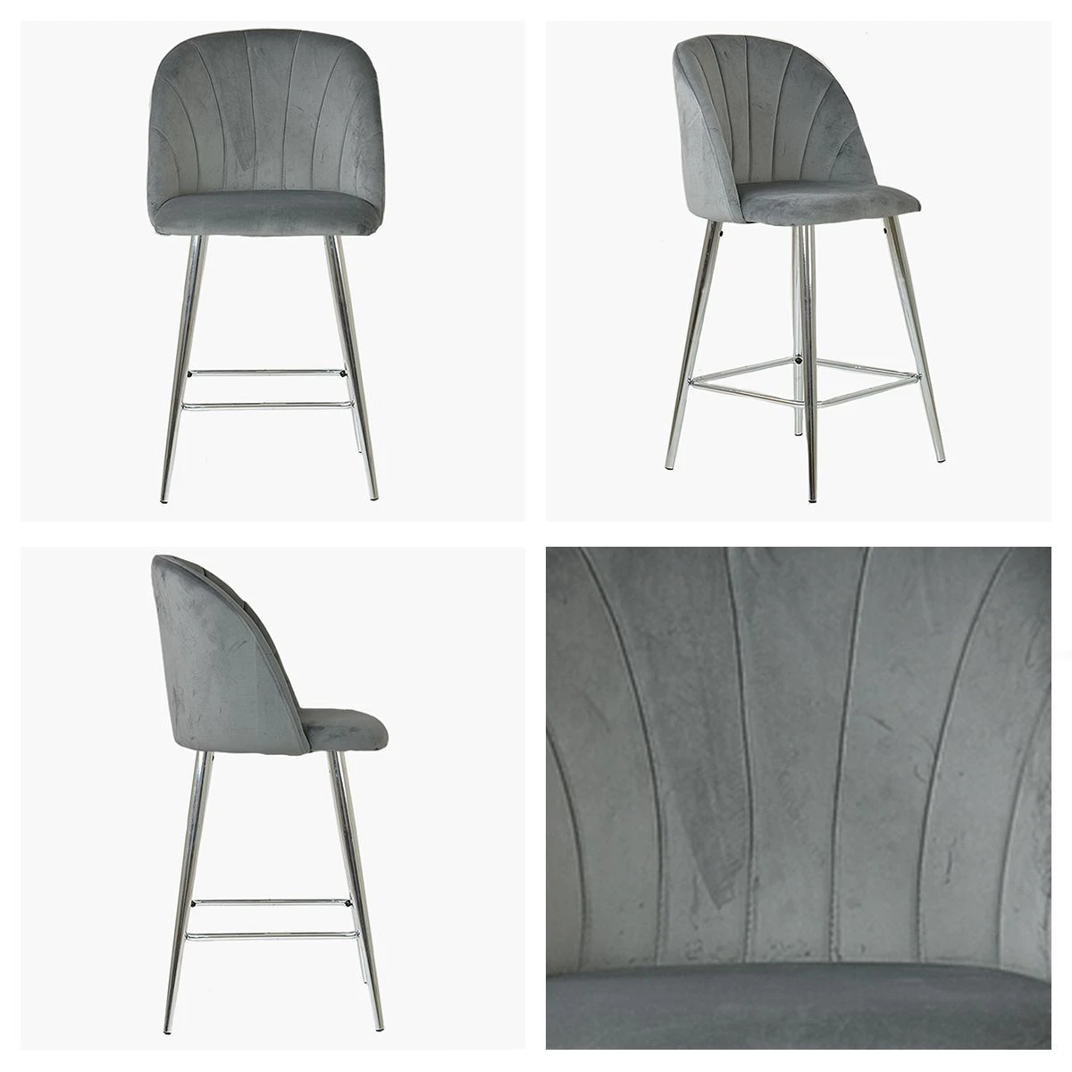 Scada Grey Velvet Chrome Leg Kitchen Stool -Furniture Specialty Store scada light grey chrome 4