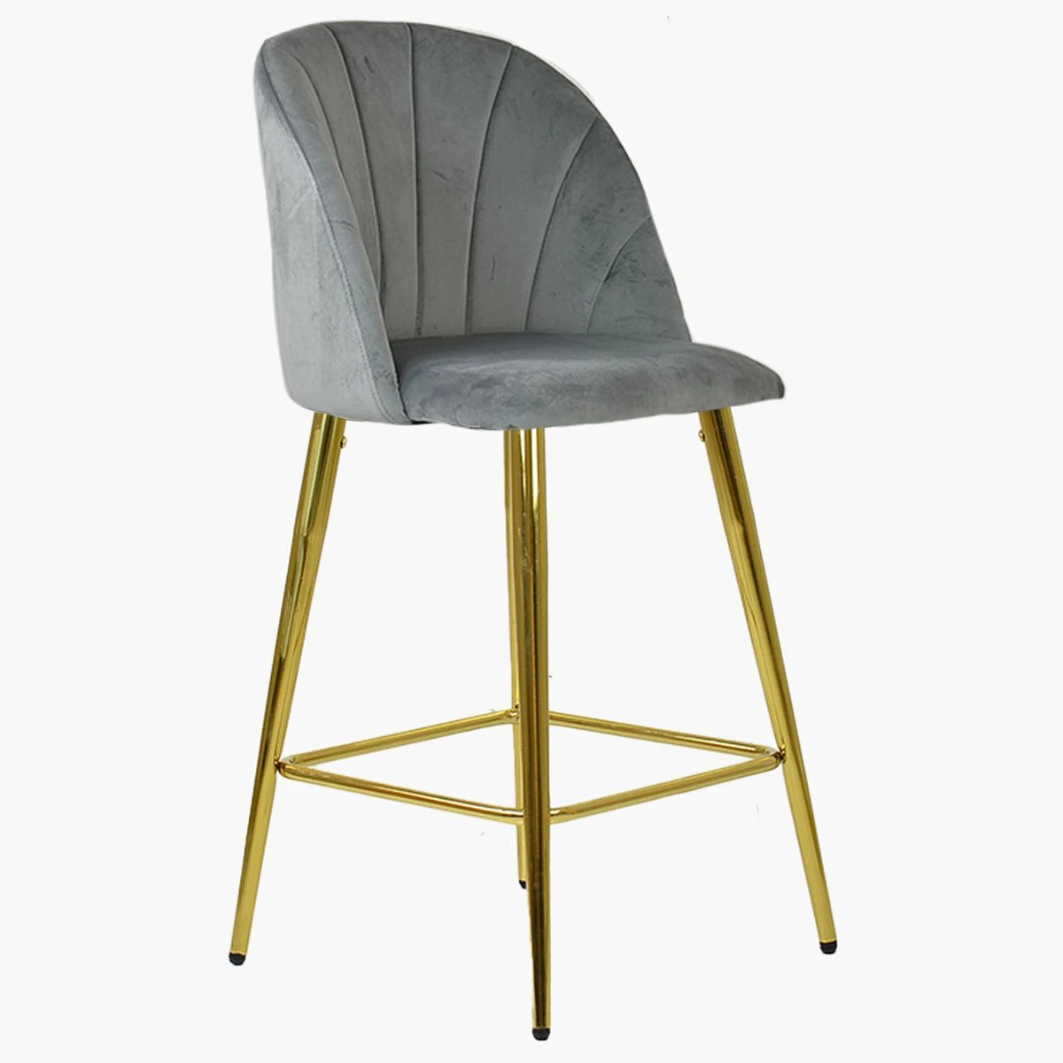 Scada Grey Velvet Gold Leg Barstool - Image 2